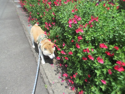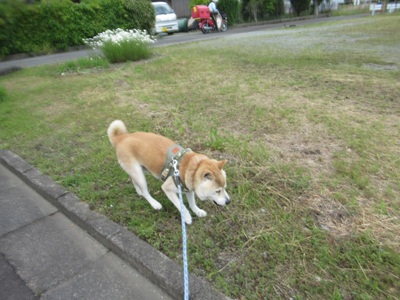 おしっこしたいのかな、と、早々と1回目のお散歩。
