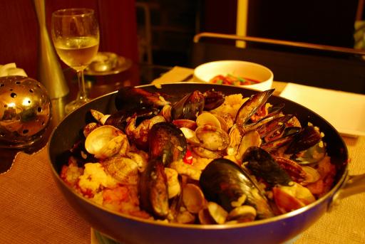 3日坊主にはなるまいと思っていたのに、だいぶ日記サボってた様で。。(゚Д゚) 今日は金曜日♪ということで簡単で豪華なレシピを★今回は【フライパン1つdeらくらくパエリア!】*材料*(3~4人前)米 2合バター 15g○ムール貝 10~12個○あさり 1パックシーフードMIX(250g) 1袋玉葱 1/2個トマト 1個パプリカ 1個インゲン 6本 ●サフラン 1つまみ●水 200CC○白ワイン(なければ酒) 100cc にんにく 1~2片コンソメかブイヨン 1個オリーブオイル 適宜塩 適宜胡椒 適宜*作り方*●サフランを水の中に入れ、色を出す(貝の煮汁作り)○小鍋にムール貝・あさり・白ワインを入れて火にかけ、貝が開いたら火を止める・インゲン・パプリカは固めに塩茹でしておく1.米をざっと洗い、ザルにあげておく2.野菜を切る 3.フライパンにオリーブオイルとにんにく(みじん切り)とバターを入れ火をつける4.にんにくの香りが出たら玉葱・トマトを入れる(みじん切り)5.しんなりするまで炒めたら米を投入しなじませる6.○の貝の煮汁(まだ貝は入れない)・シーフードMIX・●のサフラン水200CC・コンソメ又はブイヨン・塩・胡椒を入れ、沸騰するまで強火→沸騰したら中火で10分程煮る7.貝類・パプリカ・インゲン等をのせて蓋をし、弱火で15分程蒸し焼きにする8.蓋を取り、余計な水分を飛ばしたら完成!【全国送料無料】 石窯ピザ&ロースター FPM-150これは便利な一品です!ピザもパエリアもステーキも出来て\11,980!!【5,000円以上ご購入で送料無料!】[スペイン土産]コスタドールパエリアの素(パエリアパン付...パエリアパンが付いて\3,150とは嬉しい♪当店の人気商品!タイ産 インディカ米(タイ米)【5kg】やっぱりお米はこれでないと!\1,580/5kgはなかなかのお値段じゃないでしょうか??これであなたも本格シェフ本格シーフードパエリアの素スペイン産なので本格的な味が楽しめます♪\472!!■FAUCHONパエリアミックス33gこんなのあるんだ!知らなかった(◎-◎;)!!FAUCHONだし、これはイイですね♪\462