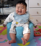 待ちに待ったバンボがやっと届きましたバンボベビーソファ ブルー人気があったみたいで入荷がちょっと遅れてたので、早速座らせてみたよ笑顔がかわぃぃでしょこのちょこんと座ってる姿がなんとも愛らしいかわいいだけじゃなくて、いろいろ機能的だったよ。・お出かけの時にコレに座らせればパーカー着せるのが楽・寝てるのを抱きあげるより、バンボに座ってる状態から抱き上げた方が手首に負担がかからない私、腱鞘炎なのでコレうれしいパパの帰りが遅かったのでバンボ使ってお風呂入りましたママが体洗ってるのを待ってます腰あたりまでお湯が入ってるから待ってるのも寒くないよね?今度はママがあがって支度してるのを待ってますこれなら待ってる間、湯冷めしないねお風呂からあがったら、ささっとタオルで拭いてまた居間で使う。パパが帰ってきたので夕ご飯食卓でバンボに座らせたらゆったりしてますいつもぐずってパパと交替でご飯食べてたから助かるわっ夕飯はシチューだったんだけど、食べたさそうに見てるので思わずひとさじあげちゃったまだ離乳食はじめてないんだけど、スプーン近づけたら口を開けてパクッてあっさり食べましたそろそろ離乳食の準備くらいはじめなきゃだな~離乳食にもバンボが大活躍しそうだわバンボ、色違いはこちらバンボベビーソファ イエローバンボベビーソファ 限定色ライラック