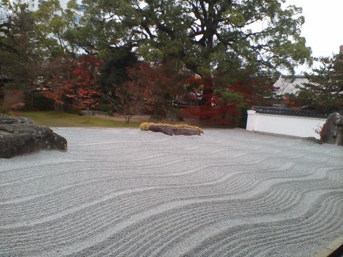 博多区にある承天寺の境内 先日、年一度仲間たちと、境内の清掃奉仕に行った時に写した画像です。とても見事な景色でしたバイ!しかし普段は、一般の人たちは入ることが出来ない場所です。数年前に新開業した近代的な博多駅から、歩いて10分もかからないところにこんな空間が存在するとですね~このお寺は、博多区の駅前にある承天寺 という、仁治2年(1241年に創建された古いお寺です。 このお寺の境内には、「饂飩蕎麦(うどんそば)発祥之地」「饅頭発祥之地」の石碑などが有り大陸から博多を通じて食文化が伝えられたとされています。また、博多の夏祭り「山笠発祥之地」でもあります。それから、年末の恒例行事として欠かせない「年越しそば」もこのお寺に関係があるとですバイ。元は「世直し運そば」と言われ、鎌倉時代に、承天寺の坊さんが、年を越せない人達をお寺に招き入れて、「世直しそば」と称して「そばもち」を振舞ったところ翌年に運が向いてきたとのことで、大変喜んだ人達は「運そば」といって毎年大晦日に食べる習慣となった言われています。出来る事ならば、平成の今この世も大いに世直しして欲しいものですバイね~