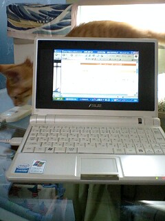 ウルチョラモバイルノートパソコンくん。 ・・・ちっさ・・・! でもあたい、負けないよ。 そういうわけでとりあえずお部屋でネット出来るようになりました、わーいキーボードがゴクチッサ(極小)で、どうにも打ち辛くてならんのです。負けないよ。これからブイブイ配達のお仕事です。雨、雨、連日の雨雨雨雨・・・・・・今朝も降るかしら。どうかしら。 ねこのなっちゃん、すっかりうちにも慣れた様子。
