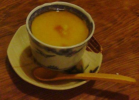 昨夜は美味しい和食を新橋で食べた。茶懐石をベースに6品出てくる。その中でブルーチーズ入り牡蠣の茶碗蒸しが美味しかった。塩味とコクをブルーチーズで出しているのだ。実はこれと同じような茶碗蒸しを地元亀戸でも食べたのだ。そこはシンプルに鰹の出汁と卵とブルーチーズだけ。亀戸のほうが出汁が濃いのとチーズの量が多いので味の濃さを感じる分だけ具は何も入らない。秋の声を聞いてから違う店でブルーチーズ入りの茶碗蒸しを食べるなんて偶然なのかなあ・・・?それともどこかに今年のお薦めは・・・て具合に業務用のマニュアルがあるのだろうか?ここの茶碗蒸しは上に生姜のきいた餡がかかっている。