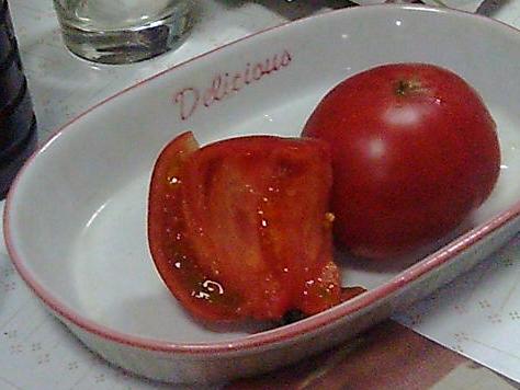 昨夜、Kisaraさんお薦めの塩トマトがやってきて早速食べた。1人一個のかぶりつき。みんなの口から「美味しい~!!」と言う言葉が出てくるのを期待していたが、「ふ~ん。」と言いながら食べていた。カミサンは「フルーツトマトと同じかと思っていたけど全然ちがうね。」でした。おかしいなと思い自分も口にしてみると、硬い! トマトとは思えない硬さ。 果肉がぎゅっと締まっているのです。そして皮がしっかりしている。 甘みはあるけどフルーツトマトほどの甘みはない。販売者のHPを読み直してみると、「トマトは酸味が重要なのです。ですから、ピカイチでは酸味のあるトマトに旨みと甘みがのったトマトを最高としています。ポイントは酸味がしっかりのっていることなのです。★塩トマトってどんなトマト!濃厚な味覚・酸味と旨みのバランスなによりもトマトが海のミネラルを十分吸い上げたところに価値がある。」と書いてある。確かにフルーツのように甘いとはどこにも書いていない。最近のトマトのイメージからすると一瞬これをトマト?と思ってしまう。生産者ではなく消費者として自分がこの塩トマトを表現すると「冬が旬の果肉がギュッとしたしっかりしたトマトです。酸味と甘みのバランスはもちろんですが皮もしっかりとした中身の濃いトマトです。栄養的には干拓地で育っているため海のミネラルを十分吸い上げています。」てな感じかな?今まで食べていたトマトやフルーツトマトとは違います。皮も果肉もしっかりとした旨みが濃いトマトです。昨夜はそれにカミサン料理のグラタンでした。 塩トマトは熊本県八代郡産なんですね。