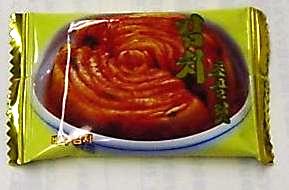人間の味覚は3-5歳位までに7-8割決まるので食育は早い時期にしたほうが良いと言われる。アメリカ人の烏賊、蛸をチューイングと言って食べないのもそのようだ。イカやタコを外人(白人)すべてが嫌いというのは嘘で、地中海沿岸の国ではイカもタコも食べるのは知られている。要は外人=白人=アメリカ人という構図ができていたんだだろう。ただ幼い時に食べられなかった物が大人になって食べられるようになるものも多くある。自分は生卵と海鼠(なまこ)がそうだった。生卵はある時期に臭い、嘔吐気分になるという体験があってから20数年避けてきたが、ある時食べたら大丈夫だった。海鼠も同様で幼い時に口にした食感がぬるぬるコリコリで無理やり喉に流し込んだらつっかえて気持ち悪くなったのだ。これも日本酒が美味しいと感じたのと、中華料理で食べた海鼠の旨さに見直していった。だけど既成の味覚(味覚のイメージ)を敢えて変えなくてもいいものがあると思う。下の写真を見てください。↓ これは会社の人が韓国出張の際に買ってきたお土産です。大きさは8x5cm位の大きさでビスケットかなあと思っていました。袋の写真はキムチだったので「キムチ味のビスケットかあ・・・」ぐらいに思って封を切るとビスケットではなくてチョコレートなのです。「チョコレート!? キムチ味のチョコレート!?」なんだか嫌な予感がしてきました。口にいれ割ってみたのが下の写真です。 中のクリームがピンクぽいのです。食べていくとキムチの味はしません。「・・・・?」わからずもう少し食べようかなと思ったらカライんです。唐辛子味です。キムチでもおかしいだろうけど辛いチョコレートは食べられません。安いチョコレートの味と砂糖の味の次に喉の奥に突如として激辛の粒子が刺激するのです。チョコレートは香りよく、甘く、苦く(ビター)なくてはなりません。チョコに包まれるものはナッツ類やフルーツ類であるべきです。チョコレートが辛いという概念が自分にはありませんし、この先もありません。面白チョコであるならばいいけれどお土産でこれはないんじゃない?下↓は変(?)なチョコの紹介