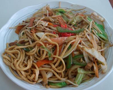 沖縄風焼きそばです。沖縄そばの麺を使った太めでモチモチ感がある美味しい焼きそばです。初めは定番のソース味。麺のもちもちがたまりません。 2番目はイカ墨焼そば。イカ墨の甘い味が太目の麺とあって美味しいです。イカ墨は世界ではイタリア・スペイン辺りと日本でしか食材として使われないとか。日本でも沖縄と富山ぐらいでしょうか?沖縄は味噌汁、煮物、焼きそば何でもありますね。