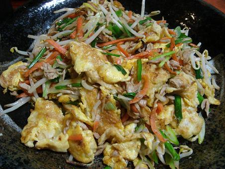 沖縄料理で料理で代表的な「ちゃんぷる」。初めはふーちゃんぷる。略して「ふーちゃん」。車麩を使ったちゃんぷるです。車麩をちぎって水で戻し、その後溶き卵につけて炒めます。すると肉みたいな食感と味になり大好きなちゃんぷるのひとつです。初めての人は麩ということを教えないで食べさせるとまず何だかわからないけど美味しいというと思います。 次はそーみんちゃんぷる。これはソーメンを使ったちゃんぷるです。美味しいので自宅で再現しようと思ってもなかなか上手くできなかった原因が今回の旅行でわかりました。そーみんちゃんぷるは普通のソーメンを使うのではなくてちゃんぷる用のソーメンを使うみたいです。スーパーのソーメンコーナーにはちゃんぷる用のソーメンがたくさん並んでいました。この店のちゃんぷるはなまり節が入っていたのが特長です。