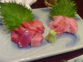 久し振りに御徒町のみちのく料理へ繰り出しました。前回が2月の冬で今回は春なのでまたまた珍しい料理に期待が大でした。メニューを見るとあるある聞いたことがない料理や食材がいっぱい。最初は「エチオピアの刺身」です。 シマガツオなのですがエチオピアの皇族が来た時の記念に命名されたとか・・・。味は脂がいっぱいのった白身魚です。マグロ風にいうと大大大トロって感じ。次は「藤壺」です。あの岸壁にへばりついている貝です。海の味がして軟らかい貝ですが身が少ないですね。 久し振りのミンク鯨の竜田揚げです。昔小学校の時は給食によく出ていたなあ・・・。 次は山菜です。「アマドコロ」の塩茹でです。山菜のアスパラと書いてありましたが苦くなくむしろ良い甘味がある山菜で葉の部分はニラのような食感です。 「しどけ」これは蕗のような苦味をつよく持った山菜でやはり茹でて食べました。食感は蕨っぽかったです。 最後は「ばっけ味噌」これは蕗味噌を焼いたものです。ご飯と一緒に食べたかったです。しょっぱかったけど美味かった。 ↓ これは山形の「山の幸市場」のHPでいろいろな山菜が載っています。http://www.h2.dion.ne.jp/~w-plants/この他にも〆鯖、本マグロ中落ち、マツモの炙りなどを頼んだのですが写真がぶれて使えません。次回食べてみたいのは「赤ホヤ(天然)と真ホヤ(養殖)の食べ比べ」「赤なまこの酢の物」