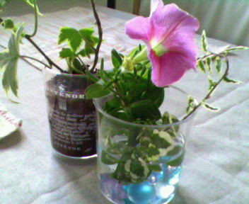 みなさん、本当にいつもありがとうございます。娘の受験に引き続き私の国家試験が控えている為、ブログもおろそかです。でもみなさん、リンクしてくれたままで・・・ホント、感謝です。これからも空きがありますがよろしくお願いします結局昨年はあやつの受験で勉強できず・・・本格的に始めたのは2月中旬。頑張ってます。だからこそ、夜はテレビ見たいのです。特に「斉藤さん」・・・・・・・・・・・・・・10時までは起きてられないのでビデオで・・・なのに・・・・・なのに・・・・・チビがうるさい。それも決め台詞のトコで。最初は我慢・・・・でも、限界・・・・うっせぇ~~~~!!!!!!本気できれると、時々言葉使いが悪くなる私・・・・主人が「ほ、ほ、ら・・・ママ、斉藤さん見たいから。ねっ、、シッ・・」私がいけないの・・・2歳のチビはなんもわからないのです。わたしはチビの昼寝中に勉強してるので、その時間ビデオ見れない。大人の都合なの・・・ごめんね。チビたん・・・・・なんとか斉藤さんがいい具合に見れるといいなぁ・・・朝はウォーキングだし。(糖尿にならないように・・もう年ですな)考えよう・・・そして、このエアープランツの右に写ってるほうなんですが・・・お花屋さんのおばたんが「きれいなダイヤみたいな花というか粒がつくの」・・・と・・・・・言うので「なんてステキなのぉ~~」と思い買いました。が・・・・・一度も見たことありませんよ~~~どこにダイヤのような粒がつくんですか~~~みなさん、ご存知ですか??おばたん、忙しくてほかの植物と間違えたのかな??これはこれで可愛いけど明日はダイヤモンドシティというショッピングモールに買い物行きます。みなさんはどんな週末かな??