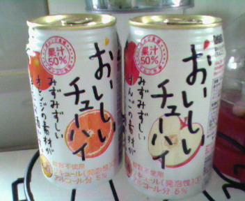 今回は宝缶チューハイが当たりました。オレンジとりんごです。果汁が50%なんですよ~~お酒で果汁こんなにあるのってすごいです!!フルーティーでさっぱりして美味しかったですよ!!さて、先日の夜泣きが応えたか、昨日の主人の会社でのアルバイトはきつかったです年かな・・・・昨日は久々天ぷら・・・そして天むすび(主人にバカ受け!!)めんつゆは美味しいレシピあるのでいつも作ってます。さぁ!!頑張って勉強するぞ~~と・・・言ってもチンプンカンプン・・・私大丈夫かしら??でも頑張ります!!