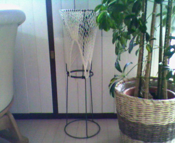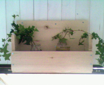 私、百円ショップが大好きで、そこで見つけたもので何か作るの好きなんですよ。これは植木鉢を乗せるのを二つ組み合わせたものです。ズタ袋を引っ掛けて、リモコン入れにしてます。すごいリモコンの数ですが・・・・そしてこれは、一枚百円の板を組み合わせて、「和」の灯を入れるやつです。後は電球を入れるだけです。ナチュラルカントリーの中にも・・・「和」・・・などと考えました大きいゴーヤです。見た目分からないかも知れませんが、すっごく大きいんです。これで今夜はおいしくいただきます!!暑いですが、みなさんお体気をつけてくださいね