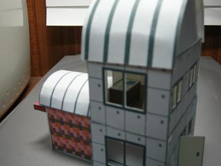 今まで作った一番小さなペーパークラフトはこの交番。モデルはすぐ近くの最近できた交番。写真に撮って、家で設計しました。正面から見た所に机と壁に愛知県地図が貼ってあるのが分かりますか?階段を登って二偕に行くと、小さなキッチンがあるのです。現物とは少し違いますが、こんな感じですよ。