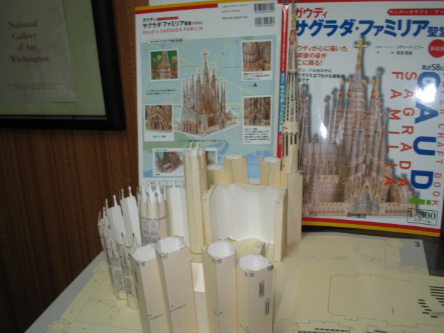 先週はとても忙しくて全然工作ができなかった暇も困るけど、適度に定時に終わりたいサグラダファミリアのペーパークラフト、まだ20パーセントくらいの完成度バルセロナの本物だって、まだ30パーセントくらいしかできてないからね来週には35パーセントくらいまで完成したいな後ろに写ってるポスターはサグラダファミリア内にあるお土産物屋さんで買ったガウディのアパートと公園の塔の絵左手のアパートは実際に今でも賃貸してるのだよすごいね、俺も住みたいもんだね