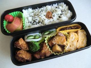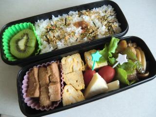 今日は午後、子供の高校の保護者会があります。上の子は理数科。各学年8クラス中理数科は1クラスなのでなのかもしれませんが学級保護者会の前に理数科保護者会なるものがあり1~3年の3クラスが集まります。 高校生になると、というか携帯を持たせてからは交友関係がよくわからないし、友達と自宅を行き来することもないのでクラスメイトの顔も名前もよくわからない状態だし、同じ学校から進学した子もクラスには1人しかいないしで他のお母さんたちともなかなかお知り合いになれません。役員にでもなればいいのかもしれないけど、学校も遠いしそれもちょっとです。とりあえず行ってきます。 昨日の下の子のお弁当です。だんだん暑くなってきたので、食中毒にも気をつけなくては。
