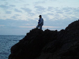 全く入道は、何考えてるんだか あの大量のブツ・・・じゃないエギなんて、しっかり送り先伝えないから、こっちに届いたんだよな、しかも 代引きあわてたよ、そんないつもいつも財布に万札入ってる訳じゃあないって言うのうん?ひょっとして確信犯?まあいいや、にしても明日(16日)は天気良さそうだけど、波と風がひどいよなでも、もうあまり行く機会もないし、友達誘っていこうお仕事、お仕事、お仕事・・・・・ さあ、夜勤も終わったし、今から家に帰ったら昼か、ま、今日は昼寝しないで強行軍と行こう1時に出発したら3時頃からシャクリたい放題、釣りたい放題の大漁ときたもんだ前から、行きたい港があったし、そこにするか、ま、港より、隣接した地磯が魅力なんだけどえ?うねりでまっちゃっちゃ、んじゃ磯は?ほぇ?立ち入り禁止ですか?落石のため、ってせっかく来たのに、堤防上ってどんな風かだけ・・・・・雰囲気いいけど、イカと言うよりもスズキって感じ、どっちみちだめだこりゃあ、後れをとったぞ、S君のところへ行かなくちゃうん?めーる入ってる・・・ 「到着、小さいが、早速2ハイ」あちゃ~、やられちゃったよ、こっちで少しばかり釣って焦らせてやろうと思ったのに、返り討ちだよS君の大好きな漁港に到着、まあまあ人がいる 「釣れてる?」 「ぽちぽち、でも小さい」くそ~、追いつかなくちゃ、桟橋のS君の横からヒトナゲおいおい、一発目から乗っちゃったよ。こりゃあ、今日はいけるかも・・・・うん、でも確かに小さいなあ、ハトの先端に行ってみようかつれねーよ、やな感じになってきたなあ、S君はマイペースで釣ってるみたいだし、今日も大きく水をあけられそうだよひも落ちて1時間以上たったよ、あの豆1ハイだけで帰らないといけないのかなあまた、嫁さんと娘に馬鹿にされるよ、やだな~ ?????当たり?くいん、くいん・・・結構引くよ抜けるかなあ結構いい型だよ、20センチ行ってるかなあ、今年初めての20超え、いけたらいいのにもう一杯きてちょうだいっと、2段シャクリ~んんんんん?きちゃったよ、連チャンだよ、群れが入ってきたのか?ぐいん、ぐいん・・・・さっきより大きいよ、寄せて寄せて、タモ車だよなあ、困ったなあ抜き上げるか?無理か?近くの人に借りる?それより、見えない・・か・た・手で・・・・・ヘッドライト ぐいん・・・・・・あ、ラインのテンションが・・・・・フッえ~、うそでしょ~・・・・やっちゃったよ・・・・フッキングできてなかった?まった、にゅうどうが、へたくそ、ッていうよなあしょうがない、仕切り直し、投げておいて、タモ持ってこよう、タ~モ~テッテッテッテッ・・・・・・ハァハァ、ホントに、体力落ちたよな、ちょっと考えないといけないよ、このままじゃ、おっさんだよ(十分、おっさんですが)あーらよっと、へなちょこジャーク~・・・・・・ん?またきたよ、ほんとこれはいいかもちょっと小さいなあ、16ってとこかなもうヒトナゲ~、フタナゲ~、ミナゲ~・・・・・・ほらきた、いけるじょ~ちょっと小さい引きだな、推定15センチ、ほら足見えてきた、これなら引き抜けるジョ~ ポチャン ひ・ど・す・ぎ・るえーい、もうふて寝じゃふて寝じゃ~午前4時お、いつも早起きのS君、お疲れかな?まだ起きてないよこりゃあ、こっそり、出し抜いて、朝マツメ、怒濤のラッシュで逆転だよね起こさないように、ソローリソローリ 釣れないまま、夜が明けちゃったよ友達M君登場夕べの釣れたよメールが効いたのかな?今日はくるって聞いてなかったけどじぇーんじぇん、釣れないから、移動しようよ移動 移動 移動 移動・・・・・ 釣れたけど、また豆だなあそうそう、ここは、前から気になってた地磯が続いてるんだったてくてくてく・・・・・・はぁはぁ きついね1投目~きたよ、豆だけど、こりゃあ、いいか2投目~そうそう、ブログように、エギが沈むあいだに写真写真・・・・忘れてきたまあ、雰囲気だけわかればいいように、携帯でいいでしょこんな感じやこんな感じ、ちょっと浅いかな、・・・・・って、放ってる間に根掛かりじゃん・・ロストやめじゃ、やめじゃ(ホントはましもとから、ザッパーンて波があがります、足場は高いから、かかったり、さらわれたりする心配はないけど)あかんかったわ S君「15センチまでやけど、3ハイ追加や、もう帰るわ」え?人がしんどいめして、ロストして、ミニ1ハイ釣っている間に、十分満足したってか?これじゃあ、やめられんM君、いくつ釣れた? 「ぼーず」ほな、これあげるわ、(ここで釣ったミニ3ハイ)晩飯の足しにはなるやろで、Sいこか M君「・・・・・・」テトラの上のM君・・・・当然、運の尽きた二人は、ここでも、ボーズでした本日の釣果、あとで釣った3ハイはM君に貰っていただいたので写ってませんあーあ、不完全燃焼、あわせ下手、集中力不足を、痛感する釣りでした