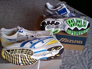 タコ星人にとって マラソン用シューズは消耗品ですいつものスポーツショップが割引セールの時に まとめ買いします今回は レース用とトレーニング用のシューズですタコ星人と一番相性の良いメーカーは 『アシックス』ですということでレース用に 『アシックス ターサーDL W』練習用は お買い得だった『ミズノ WAVE RIDER 9』です『ミズノ』のシューズは 初めてです今使っているシューズが 使えなくなるまで 下駄箱のインテリアになってます
