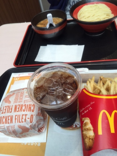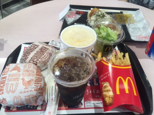 夜勤明けの休日昨日の止んで 5時起き相変わらず股関節痛&脚筋肉痛だけど ゆっくり慎重に止んでるけど 今にも降り出しそうな 涼しくてチョッと距離短縮して22kmコース帰路は脚ガクガクだけど さらに慎重にシャワー浴びてリフレッシュ 洗濯&掃除してタコ娘を成田駅まで迎え 子供二人といつものイオン成田デートやっぱりの魔力から抜けられず 「チキンフィレオセット」クーポンもサイドメニューが選べるようになり サイドサラダにゴマドレッシング入れてシェイク ポテトはタコ坊主にスポーツオーソリティ 先週に続き子供たちの買い物 セールだけど20%オフにならず 15%オフで本屋他廻り 再びフードコートミスド 100円ドーナツを一人一個