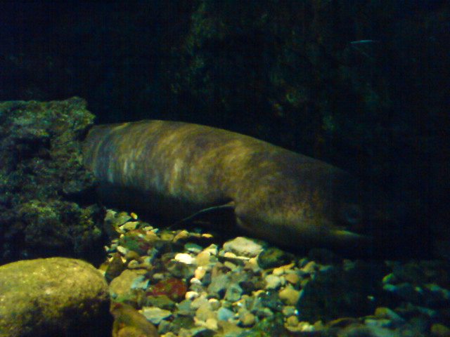 もうすぐ「丑の日」って事でこの前水族館で撮影した「おおうなぎ」を載っけてみた。写真のうなぎの体長は180cm~2m位、太さは20cmくらい。鹿児島ではイッシーで有名な「池田湖」に生息、、知らなかったのだが、鹿児島の川の上流にもおるらしいこんなのが川遊びしている時におったら絶対腰ぬかすだろうなぁ、、、うむ