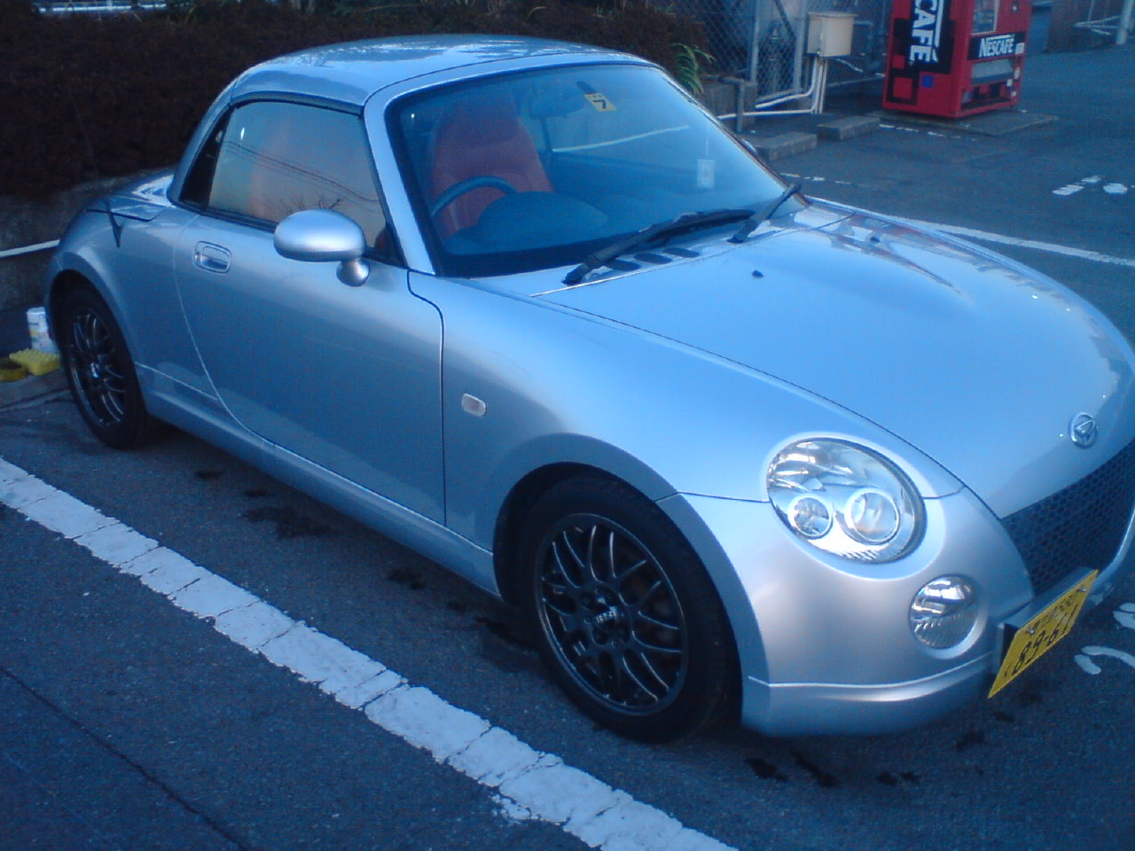 ホイールがBBSになった事は先日書きやしたが、、前からタイヤがちょっとボディの内側にに引っ込んでいるのが気になっており(特に後輪)もうちょっと、こぺ太郎セクシーにしたくツライチっていうんでしか?昨日オートバックスにてホイールスペーサーとやらを購入しサイズはよく分かんなかったのでおそるおそるお店の人を呼び口べたなりに一生懸命話をして、取り付けるにいたった。工賃込みで4000円ちょい、、前が3ミリ後ろが5ミリのスペーサーだ。ちょっと前までタイヤがボディからはみ出したチョロQ状態もおもしろいなぁと真面目に考えていたのだが、、、どうやら車検が通らないみたい。てことはチョロQは違法改造車両なのか?(チョロQは玩具です。)、、、話がそれた。取り付けるまでお店の中でうろうろしていたのだが、、正直不安で仕方なかった。お店の人に聞いたとはいえ、部品買ったのにサイズが違っていたらどうしよう。(もう一回り大きいサイズのもあったので、、)作業終了のアナウンスが流れるまで心配だった。しばらくして、、「takoさん作業終了しましたので4番ピットまで、、、」とのアナウンスを聞いて、、「作業終了」との単語に安堵感を感じてしまいやした。日曜日てこともありオートバックスの作業ピットも慌ただしくしていたのでそうそうに移動して、家に帰ってから改めて、コペ太郎を眺め見ると、、自己満足の世界なのでしが、かなりかっこ良くなりやした。ただ何となく運転中ガタガタ、キシキシ感が強くなっていた気がするので近々高速を走ってみよかな。と思ってます。