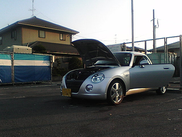 今日は夜7時30分に仕事が終わり、、、外にでるとなんとなく不思議なもので夜にも関わらずまだ日が暮れきってなかった。(夕暮れだった)車に乗り込みふと、、なんとなく町中や近所はやたら恥ずかしいので休日限定で郊外に出るときのみオープンにしていたのだが今日は珍しくオープンにして帰る事にした。早速、天井部分のロックを外して、、、スイッチを引く、、いざ屋根を収納、、、ちょっと耳障りだったけど聞き慣れたモーター音もしばし、、ほんの20秒程でフルオープンになった。そして会社の人がでてこない事をちょっと祈りつつ会社の前を通り抜けゆっくり走らせるあっという間だが日が暮れてしまった。走らせてると、、夏だからか、、風がぬるい、、まぁ悪くはない、、のんびり走る。。ちょっと前に床下に補強パーツを入れた事もありオープン時の変なギシギシ音は、強度不足は、ちょっとは解消されたと見た。ガソリンがあんましない事に気づく、、仕方がないのでガソリンスタンドに行ってガソリン給油したらリッター当たり152円だった。ちょっとがっくり、、そんなこんなで自宅までの15分程のプチドライブは終わり家の駐車場についた。たまにはオープンもいいもんだね。とふと思った。