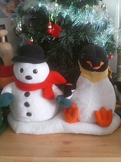 たくみんとクリスマスの準備をしました。某電機屋さんで980円で買ったこれ・・・雪だるまとペンギンが交互に歌いながら動くもの。3日目にしてペンギンが動かなくなりました