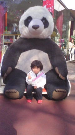 一緒に撮れたのは、大きなぬいぐるみのパンダさんでした・・・大笑い