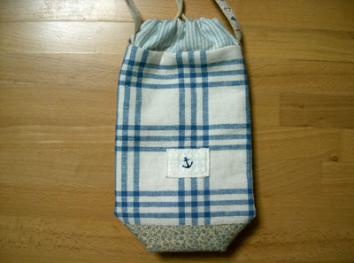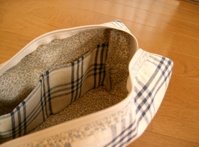 マチをとったら下の生地が寸足らずになってしまいました。丸底が本来の姿なのでしょうけど、相変わらずパターンなど取らない私、