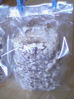 先日、ダーリンからプレゼントされた【シイタケ栽培キッド】。私が最近、自宅でハーブの寄せ植えや観葉植物をせっせと育てていたのと、漫画「美味しんぼ」で紹介されていたシイタケ栽培に興味があると話していたため。実際栽培をスタートしてシイタケが出てこないとか、枯らしてしまうとか、心配になっていましたが、先ほど説明書を読んで栽培を開始しました。よ~く見るとすでにシイタケが出てきてるよ。コレから1日1回水やり忘れないようにしないと…。