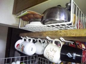 ワイヤーラックを利用してお片付け。 マグカップも、食器棚よりはこちらにぶら下げたほうが安定してる気が・・・ こちらは、100均で買い揃えたものばかり。ちょっとだけスッキリした気がします。あ、コーナーラックだけは3コインのお店で購入。本当はお風呂用で、シャンプーなんか置くものらしい。~小さなスペースも収納力は抜群~ステンレスコーナーラックパール金属パール金属 カラーストレージL型コーナーラック2段(グリーン) (AP91253/H-3436)【smtb-TK】あの老舗『シミズ』のシャンプーラック・バスラックが楽天で買える【パウダーコート バスコーナーラック 2段】(シャンプーラック・コーナーバスラック 2段)★場所をとらないコーナータイプのシャンプーラック・バスラック★【半額特価】フェターナコーナーラック (FR-9875)定価50%OFF(オフ)セール!