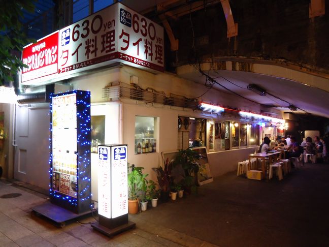 8月6日(土)、週末の飲みニストは、有楽町へ。。。 mixiの下町グルメのオフ会でタイ料理の「あろいなたべた」さんへやってきました!! 開始時間に行くと、既にたくさんの人が待ち行列に。。。人気店なんですね。。。 今回は、店の外の席にしてもらったので、ほどよく風が通って気持ちいい感じ。 生ビールで乾杯してオフ会がスタート!! あてには、 〇パックブン・ファイデン(空芯菜のタイ風炒め) 〇ソムタム(青パパイヤのサラダ) 〇ポピアトート(揚げ春巻き) 〇焼きそば 〇グリーンカレー&レッドカレー 〇ヤムウンセン(春雨サラダ) 〇トートマンクン(エビのすり身揚げ) 〇カオパックン(タイ風海老チャーハン) 〇パッキーマオ(ビーフン極太麺のピリ辛炒め) などなど 注)自分で注文したわけではないので、もしかしたら違うかも。。。 などをいただきました!! 辛い料理が多いので、ビールの進みも早く。。。一体何杯、ビールのピッチャーをお替りしたやら。。。 飲みニストの印象に残った料理は、 〇ソムタム 普通のサラダのつもりで油断して食べたら、なかなかのピリ辛!! これは、ビールのあてにいいですねぇ。。。 〇グリーンカレー&レッドカレー 人数が多いと色々な種類のカレーが楽しめてよかったです 〇パッキーマオ 食べた時はそれほどでもないのですが、後からとにかく辛い。。。 パッキーマオとは、パッ(炒める)・キーマオ(酔っ払い)とのことで 「酔いが覚めるほど辛い」という説があるとか。。。納得ですぅ。。。 パッキーマオの辛さの余韻を楽しみながら、オフ会は終了!! と~っても楽しく美味しいオフ会でした!!