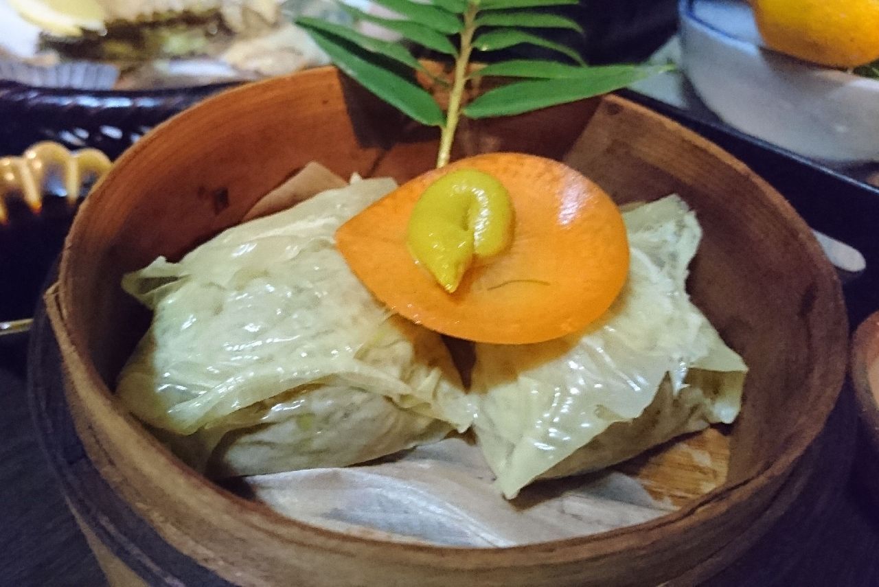 イメージは、シュウマイの皮の中にイワシのつみれが入っている感じで、