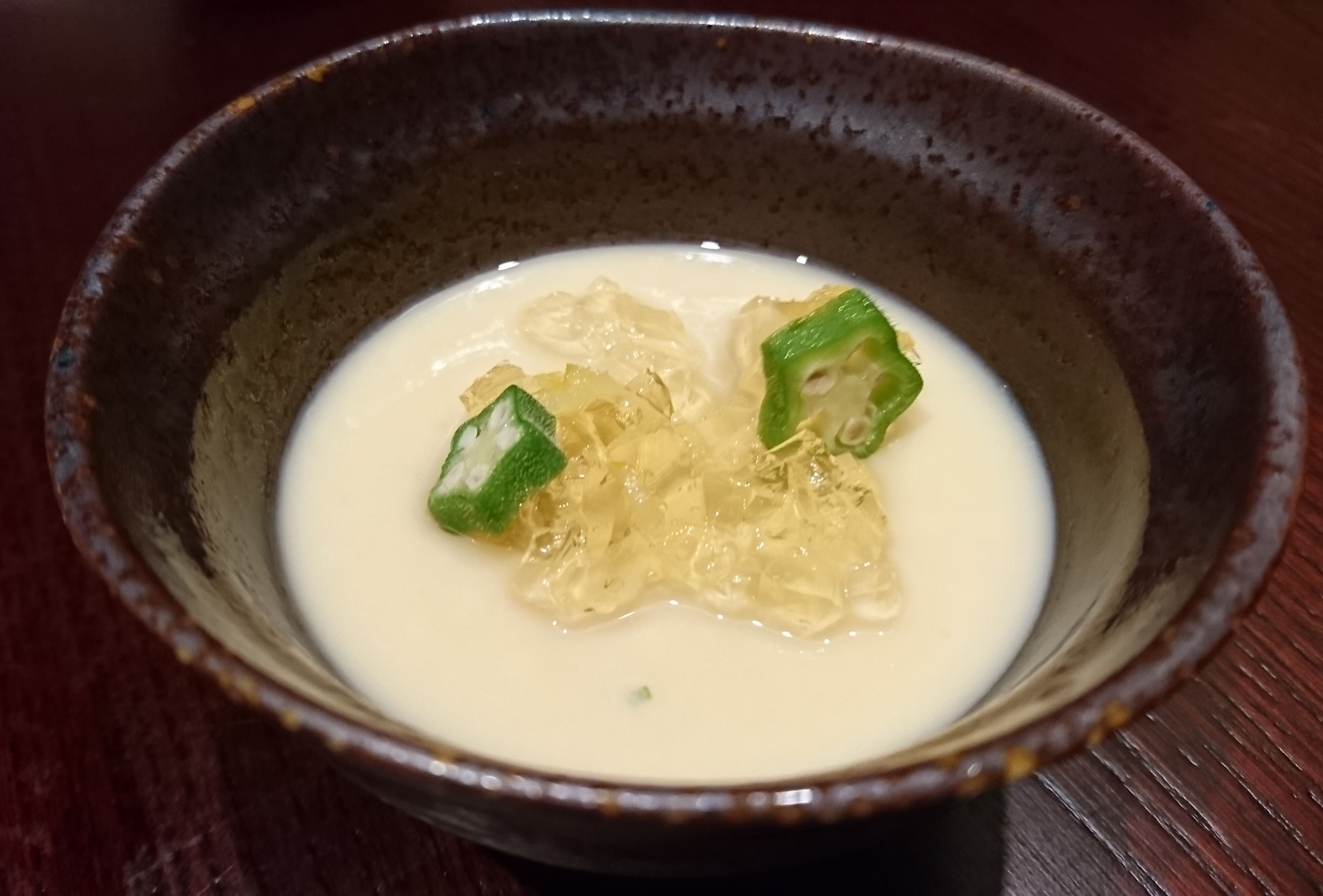 上に、出汁ジュレ、オクラが載っていて、いい味わいとアクセントを与えています。