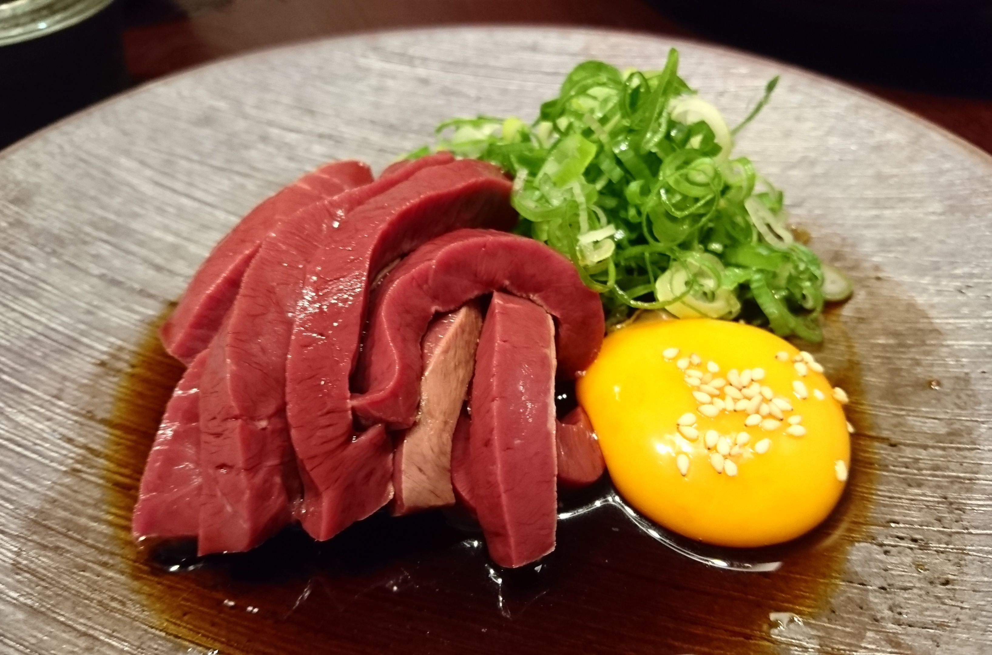 プリプリっとしたハツを黄身と醤油ベースのたれで混ぜていただくと、