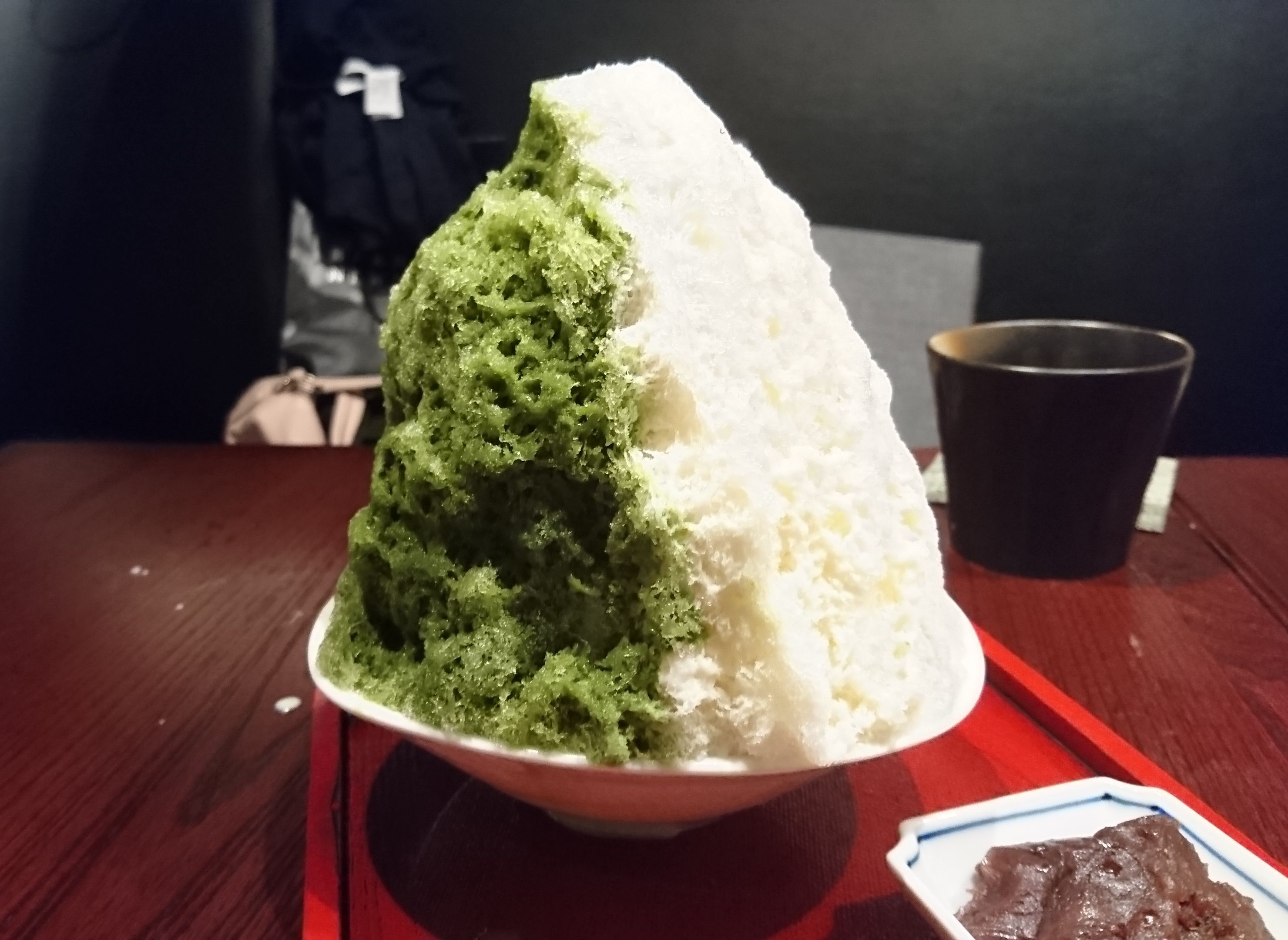 宇治抹茶と練乳のコントラストがめっちゃきれいですねぇ。。。