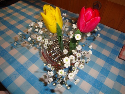今日は朝から、息子の通学路清掃の日私は、お手伝いでぜんざい作りに行ってきました~その後、引き続き子ども会でのお別れ会・・・子ども会での活動も、もうこれが最後なのね~娘から延べ9年通った小学校とも、あと数日でお別れ。幼稚園卒園のときもそうだったけど・・・上の子の時は、まだ下の子が通うからそう寂しくないけど、下の子が通わなくなるってことは、もうそこには行かないってことだから妙に寂しいんですよね~4月からは中学生どんな成長を見せてくれるでしょうか今日息子がもらってきたお花~やっぱりチューリップさん可愛いねお庭にも、プランターに植えた例のチューリップさん以外も咲きだしました月曜から寒くなるって言うし・・寒くなったらこれに挿してあげようかな~ で・・・今のとのは・・・ハウスで、お休み~~