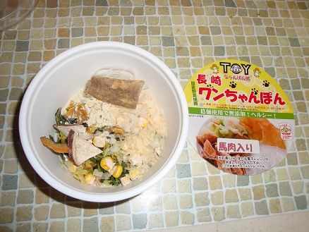 この前買った、ワンちゃんぽん。もうすっかり忘れてたので・・・夕食に・・・すごい具沢山 葛麺、かぼちゃ、小松菜、鶏肉、馬肉、コーン、おから、芋、キャベツ、人参だって~今回は、お湯を入れる方法で作ってみますレンジでチンでも良いらしいよ~ 楽しみだワン まてよしあれれ・・・いつものメニューとぜんぜん違うので戸惑ってます・・・なんだか目で訴えてる・・・ お姉ちゃんにスプーンで食べさせてもらいました~ ん~なかなかですねこれで、僕も立派なながさき犬です さて・・・やっときました・・・私の快適なお掃除道具掃除機ヘッドほら、割れてないよ~~不便な一ヶ月ちょっとに、さよならだわ~~