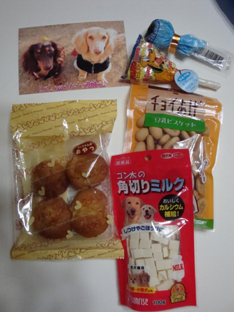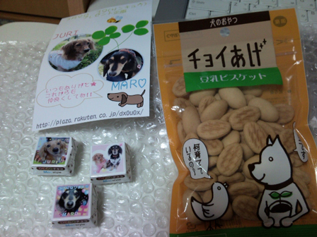 今日も雨・・・気温もぐ~ンと下がってて今日は高校の合格者登校日で、体育館での説明は超さむかったですもう少しいたら、確実に風邪引いてましたよ でも、そんな寒さも忘れるほど、とっても嬉しい暖かなお届けものがありました~~ところてんさんから~とのにって 美味しそうなウマウマをいただきましたどれから食べるか悩みますね~~マロニ―ちゃん、とっても美人さんハルサメさんはとってもお茶目で可愛いカードもすごく素敵嬉しい~~ お母ちゃん、何の写真を撮ってるですかぁ僕・・とっても気になるんですけど・・・・・・・それはもしや・・・マロニー姉さんからのでは、ないですかかすかに、マロニー姉さんとハルサメ君のニオイがしますよそうだよ~~とのにってよかったね~~さ、ごあいさつ、ごあいさつ わかりました ところてんさん、マロニ―姉さん、それにハルサメ君・・・ 今日は、とっても美味しそうなうまうまをありがとうございました。僕、感激で涙が出そうです・・・ ところてんさん、マロニーちゃん、ハルサメ君、本当に、ありがとうございました~ 明日は、お休みって、今日も休んでたけどね~久しぶりにさんが顔を出すみたいだけど・・・お散歩行けるかな~~