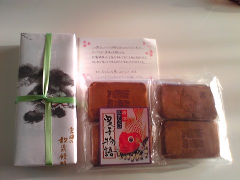 今日もとってもいい天気お散歩は、お姉ちゃんと・・・と言っても、相変わらず歩きませんでも~すぐ近所の公園までは、すたこら歩いて・・・公園で一暴れして帰ってきてますので、大丈夫ですもともと、お散歩好きじゃないから 今日は、先日40000HIT残念賞をお送りしました、shigeshigeさんからお返しにと唐津の名物お菓子を送っていただきました私の大好きな松露饅頭・・・ご存知ない方のために・・・見た感じ、たこ焼きみたいですね中は・・・ほらあんこがぎっしりうしろで、おばけみたいに写ってる方は、気になさらず・・・shigeshigeさん、キララちゃん、今日は唐津のお菓子ありがとうございました。お母ちゃんは、早速僕に見せびらかして食べてましたお母ちゃんに代わって・・・僕からのお礼の鼻チューを shigeshigeさん、ありがとうございましたこれからも、よろしくお願いします~ shigeshigeさん、キララちゃん美味しいお菓子をありがとうございました。