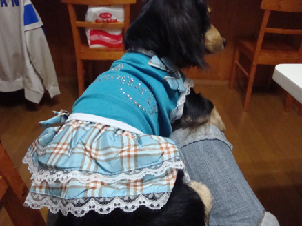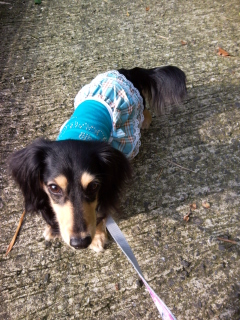 今日は、夕方からやっと晴れました~久しぶりにお散歩~今日はおねえちゃんと一緒に無理やり着せられた今日は、との子ですから・・・途中、トイプーちゃんに出会って・・・テンション低いとのでした・・・