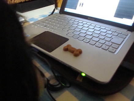 ハイ、今日は30日~特別なおやつの日です わ~~ だんだん顔が近づいてきてます いい香りですぅ~~ あっという間におなかの中・・・今年も上手にお薬飲み終えました~ さて、職場の人が東京に結婚式に行かれて~洋服をお貸ししたら、お礼にお土産頂きました景気上昇最中だって~~こしあんがたっぷり入った最中でした~ ところで今日は朝から大ボケな私・・・っていつもだけどホームベーカリーに夜のうちにセット~朝からは美味しいレーズンが食べれる予定でした。しかしイースト入れ忘れもちろんペッタンコなんだかもちもちしてて・・・パンとはかけ離れたものでした。ショックで始まった1日・・・そして、電気ケトルに水を入れて・・・スイッチを入れたはず・・・そう「はず」インスタントコーヒーに思いっきり注いだそれは・・・水電子レンジでチンして飲みました 最近、ホント私ってバカじゃない~~ってことたくさんあって、涙出るよ。明日こそレーズン食べるぞぉ~~