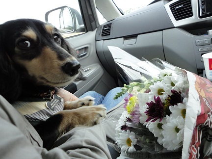 今日も黄砂で晴れてるんだけど、どんより~って感じの天気でした。今日は、家族で 今日は、お出かけ~お母ちゃんたくさんのお花を買ってたよ どこに行くでしょう~ 着いたところは・・・今日はお墓参りでした~僕は会ったことないんですけど、おじいちゃんのおうちなんだって。ほら、みて~お母ちゃんの後姿・・・これだよクルクルの頭・・・ 僕もお姉ちゃんに抱っこされてきちんとお参りしたよ。 その後、おばあちゃんちに行って、僕は、バナナをもらったんだ。おばあちゃんは、いつも僕におやつを用意してくれてるの。優しいよ 帰りは、前にもブログで紹介したけど100円クレープのお店に寄り道~今日は、チョット控えめなお買い物~上のシフォンケーキもクレープも100円だよ。 さて、さて休みはあっという間に終わり・・・明日はお仕事です~頑張るよ~ ご訪問、遅れてます。レスもできてません。ごめんなさい
