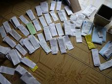 きいちごさん主催の「第2回しじみ巾着交換会」しじみ巾着は発送の準備ができました。途中メール便出すところあるかな~19日から23日まで横浜の家へ帰ります。お掃除やらいろいろメンテナンスに・・・行きたいところいろいろですが・・・いけるかな~きいちごさんが教えてくれたはんこのお店(二子玉川)とリネンワッフルの日暮里の安田商会?・・・・・・・・・・・・・・・・・・・・・・・・・・・・・・・・・・・・・・おとといはたくさんの荷物が届き嬉しい1日でした。しーちゃんから・・・カウプレ当選のマスクhananaさんから・・・種交換の種とミニバラ・ジキタリスほか毬さんから・・・・・白い苦瓜の種と素敵なレースがたくさんsnowwingさんから・・・注文資材(しじみ巾着Sサイズ用紐)オークションから・・・イニシャルテープ(自分用EU)昼間写真がうつせなかったんで、後日アップしますね。/FONT>おまけ三番花のブルースター(種まき進行中) ではいってきます