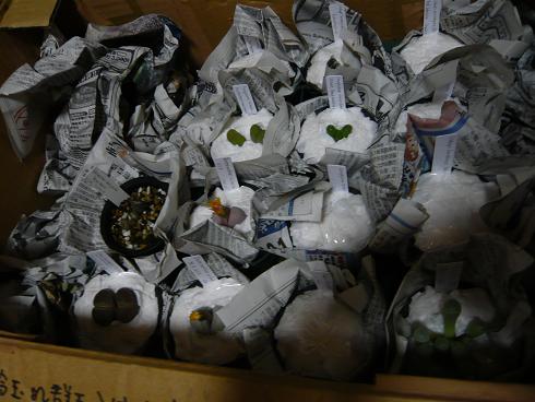 あのぱかーっとなるリトとコノをちょっぴり買いましたあまり良くわからないのですが、どうしてあんなふうにパカッーと割れるのか不思議でしょうがないです。不思議?不思議?でとりこになっちゃいました。まだどうやって育てていいかわかりませんが・・・届いた時の様子です。早く見たくてごそごそと暗い中でこっそり(内緒で買ったのでこっそりです。こっそり見るには荷物でかすぎですが・・・)丁寧な梱包にびっくりです。大切な子供を嫁に出す心境だったんでしょうね。 暗いです。見にくくくてごめんなさい。 夕方こっそり玄関で撮影しましたので暗いです。梱包を解いたらもっと美人の?お顔ご紹介しますね