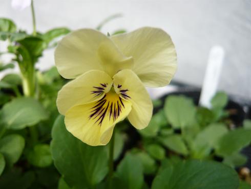 ブリーディング講座の交配種第1号ビオラが開花やさしいクリーム色に紫のひげが愛らしいビオラです。おかあさんはどんな色だったか今は記憶にありません。(品種名は記録にあるのでROKA先生に確認しようと思います。)お父さんは大好きなブラックビオラです。まだひとつだけの開花なのでまだイメージがつきません・・・(他の花がどんな色合いかはもう少し先でしょうか?)とっても可愛いです。(親ばかに通じますね)種まき後のポット定植は5ポット待機中全部のお花がどんな色かとても楽しみです。