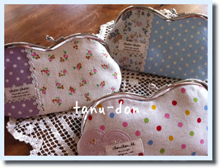 昨日は なんにもやる気がしなくてホントにな~んにもしなかったuu いい休養になったのかなぁ。。。とも思うけど もったいないことしたなぁ。。っても思う◎◎ 北海道の二女サンから 『今 釣りしてるよ~!!』『いいなぁ 白くまがするような釣り??』『そうそう それそれ~♪』 『スナフキンもするよね~??』『アハハッ。。。。 それそれ~^^』 私のイメージ。。。。凍った湖とかで 氷に穴あけて釣り糸たらす。。。 アレアレッ!! 『マジ寒いよ~っ マイナス25℃くらいかも~^^』ってなぜか テンション高かった寒すぎてこわれたか(・・??? アハハッ ******** がま口サン ******** NO.46 先日つくったでかバッグ♪♪可愛くって。。。 またつくっちゃった^^-☆タグが少し違うんだよ~☆