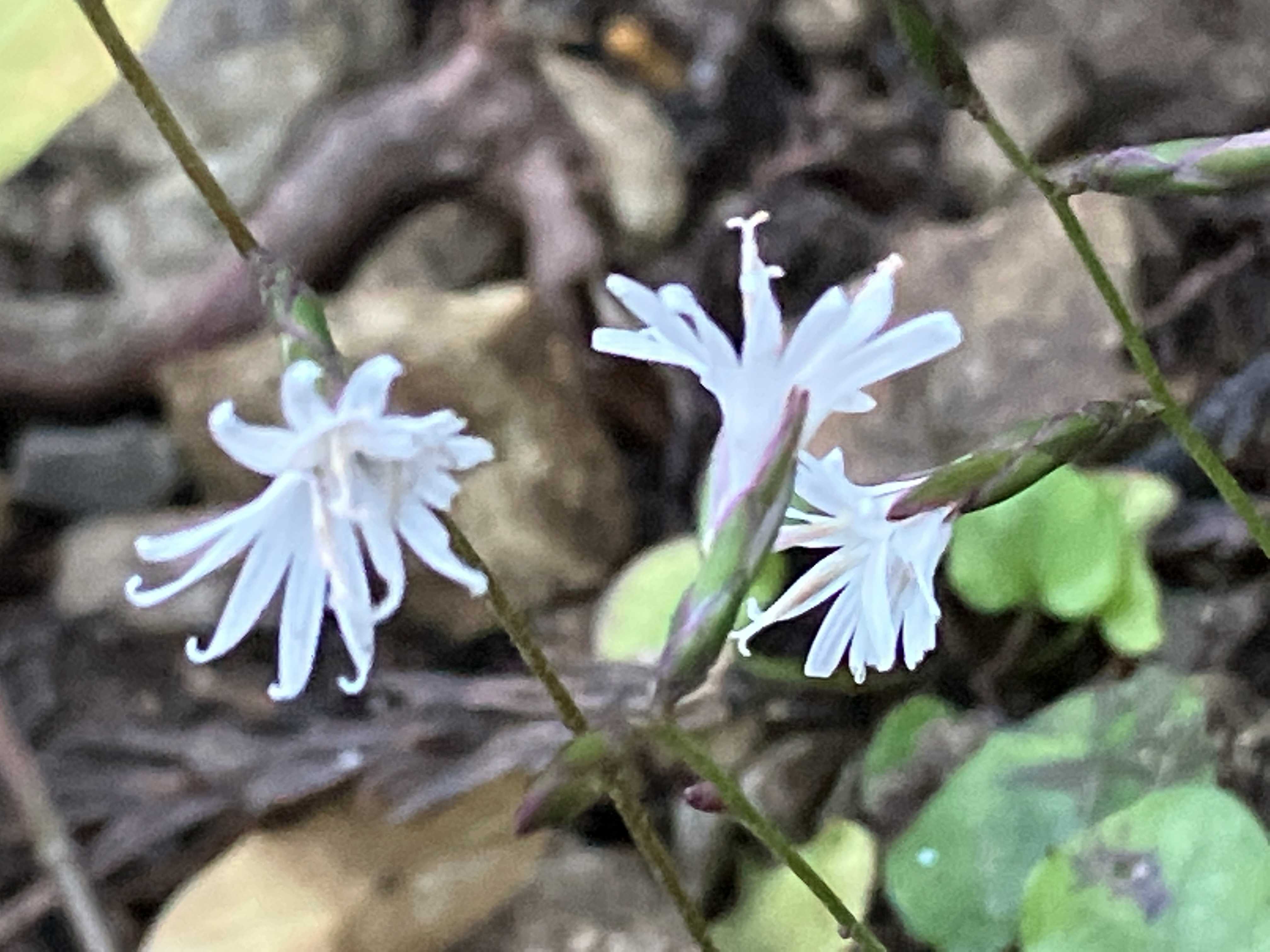 と、キッコウハグマの綿毛の中に花を見つけた。