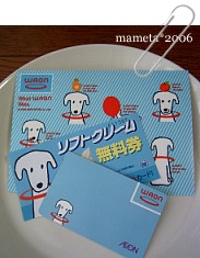 こんにちは最近暖かくなったり寒くなったり・・・異常気象?と思うような日々が続いていますね。寒いのが苦手なので、早く暖かい日が続くようになって欲しいです(´ヘ`;) 昨日は急いで子どもたちのお迎えに行って、近所にオープンするミニストップのプレオープンイベントへ行ってきました♪前日にチラシが入ってきて、小学生以下の子ども対象でソフトクリーム作りが体験できるというのです。ファーストフードの試食もできたり、コーヒーの試飲もあったりで人がいっぱいでした。順番がくるとミニストップの制服と帽子を着せられ、手を消毒してソフトクリーム作りです。ソフトクリームはバニラ・ミックス・抹茶から選べたようで、息子はミックス、娘は抹茶を選んでました。カメラ忘れたのが悔やまれる~><WAONでお買いものすると景品がもらえる輪投げゲームもできるというので、WAONカードを買いました。イオンで時々買い物するので、WAONカードがあった方がお得かな~とずっと気になっていたのです。オープン記念でソフトクリーム無料券付きでした輪投げゲームは息子にやらせたら末等のWAONシールに^^;チャージが千円単位なので「使った分だけチャージ」というのが出来ず、家計簿の管理上不便だな~と感じますが、お客さま感謝DAYの5%OFFとかポイントUPとかを上手に利用していきたいと思います♪* * * * *買い回り、また始まりましたね~♪4月末で期限切れのポイントがあるので、少しだけポチ予定です。 楽天ブックスで2000円以上購入でポイント5倍なので(要エントリー)、本を買おうかな~と思ってます。 チェブラーシカの絵本も欲しい♪我が家のチェブラーシカは、娘がかいがいしくお世話しております^m^帰宅すると、玄関先の椅子の上にタオルを掛けられて寝てたりします(笑)。 ネックレスも欲しいです♪ ポイント5倍のキムラタンも気になってます(^^ゞ・・・最後までお付き合いありがとうございました