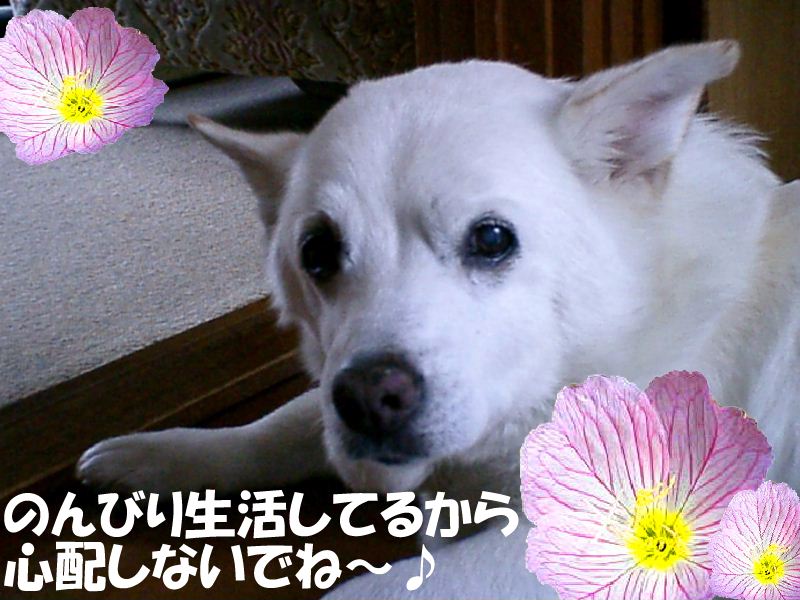 昨日ワンコ友達のsmatiさんから太郎へのお花が届きました。なので今日実家に行って太郎にお花を供えて来ました!「太郎、smatiさんからお花が届いたよ~」きれいでやさしい春の色のかわいいお花です。よかったね、太郎!ありがとうございます、smatiさん!!!太郎~、虹の橋でスマーフちゃんにもお礼を言っておいて~!「きれいなお花ありがとワン」って。父も母も太郎にお花が届いてびっくりしてたけど喜んでました。太郎の写真の周りがにぎやかになりました!ホントにホントにありがとうございました!!!そしてお花の入ってた箱は・・・シロの隠れ家になりました!段ボールを見せたら早速匂いをかぎながら中に入って荷物を運ぶための穴の部分に鼻を突っ込んでました・・・お花と段ボールを贈っていただけて太郎もシロも幸せだね!素敵なご縁でねーちゃんもうれしいです!