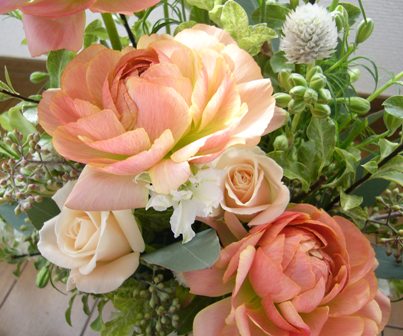 今日は今年初の生花レッスン市場にも春のお花がたくさん増えて、花材選びも楽しい季節になって来ました♪<花材>・バラ(シャンパン)・ラナンキュラス ←くすんだピーチ色・ラクスパー(ホワイト)・千日紅(ホワイト)・ユーカリポプラス(実付き)・ピットスポラム今回は皆さん同じデザインで基本形の「トライアンギュラー」をレッスン!いつもはかなり自由な感じでアレンジして頂きますがトライアンギュラーはしっかり学ぶと色々とデザインの応用に役立つので三角形のラインをかなり注意しながらアレンジして頂きました。ポイントは点と点を結んだラインが内側に反り返るように形を取ること!!☆KAさんの作品☆ラナンキュラスの存在感たっぷり!ローズもラナンに負けない存在感です♪とても豪華な作品に仕上がりました☆TYさんの作品☆ラナンキュラスが流れるような配置でバランスが良く可愛らしいアレンジです手際も良くとても早く仕上がりました!!☆KKさんの作品☆まだフラワーアレンジを始めて間もないですがバランスも良くシャープでのびのびとした作品に仕上がりました普段あまり「トライアンギュラー」自体を飾る機会はありませんがラインの取り方などを習得するとデザインの幅がぐっと広がります!お時間があれば、もう一度花材を全部抜いて作り直してみてくださいね!花持ちも良くなりますし、すぐに同じデザインを再度レッスンすると何か掴めますよ明日はプリザーブドの「スペシャル・プライベートレッスン」です頑張ります!!