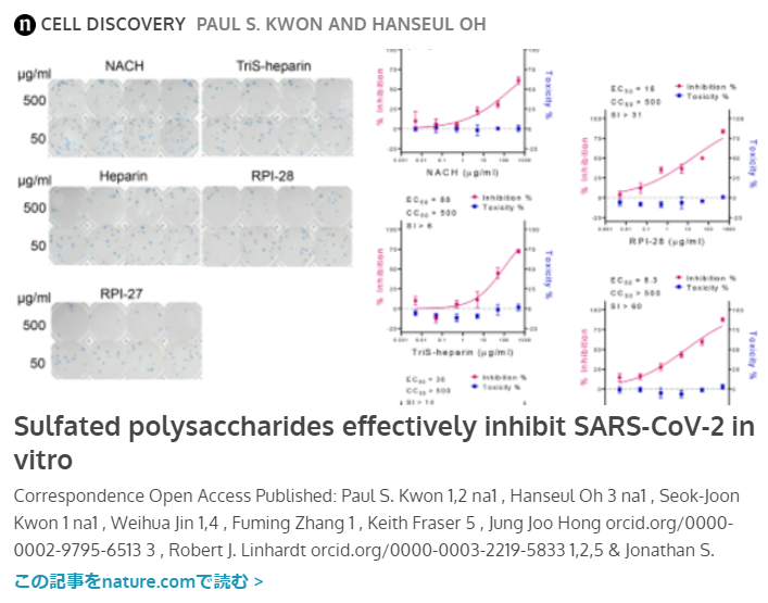 RPI-27のEC50値は約83ナノモルでしたが、同じ哺乳類細胞でのレムデシビルの同様の以前に公開された独立したin vitro試験では、770ナノモルのEC50が得られました。 ヘパリンは、2.1マイクロモルのEC50、またはレムデシビルの約3分の1の活性を示し、ヘパリンの非抗凝固アナログは、5.0マイクロモルのEC50を示し、レムデシビルの約5分の1の活性を示しました。
