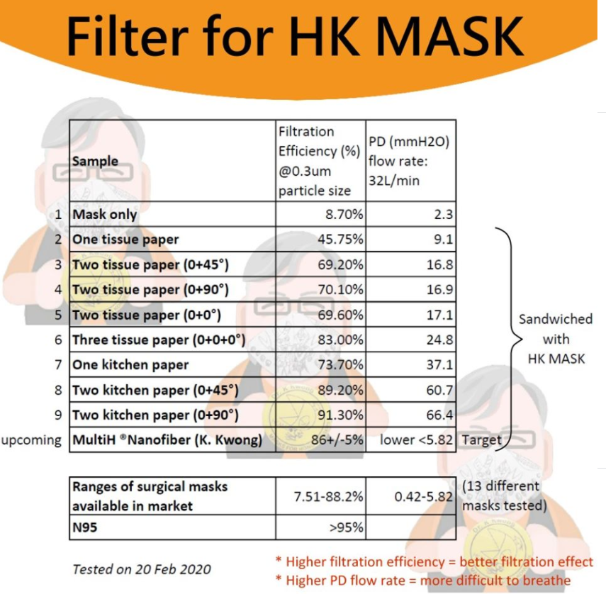 縫わずに作れるハンカチマスクやバンダナマスク、手ぬぐいマスクでも不織布フィルターやティッシュなどをはさめば高性能マスクになります。一番いいのは、布マスクにはさむ不織布フィルターの供給を増やすことかもしれません。